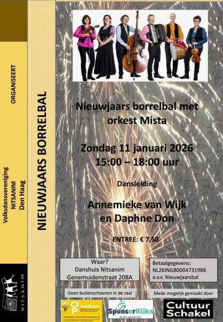 Nieuwjaarsborrelbal o.l.v. Annemieke van Wijk en Daphne Don bij Nitsanim, Genemuidenstraat 208-210, Den Haag. Flyer |